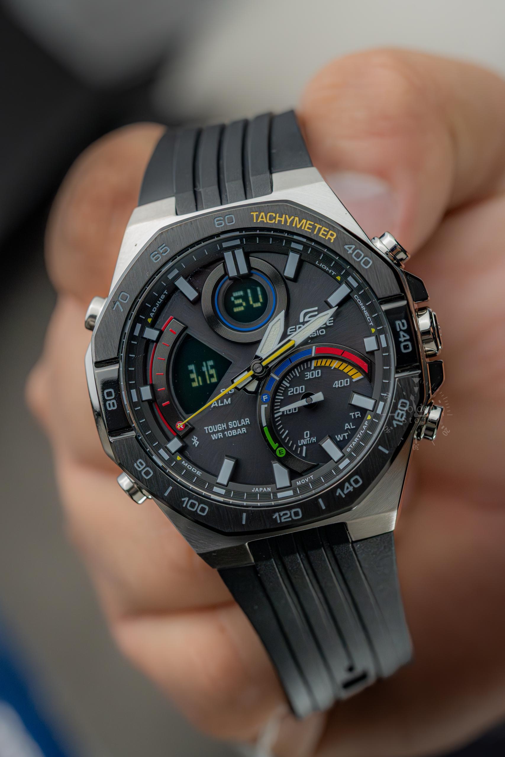 El Casio ECB-950MP-1A es un reloj deportivo de alto rendimiento que combina tecnología avanzada, diseño moderno y materiales resistentes. Su estructura de acero inoxidable con detalles en negro y banda de resina ofrece un estilo robusto y sofisticado, ideal para quienes buscan precisión, conectividad y funciones profesionales en su día a día.