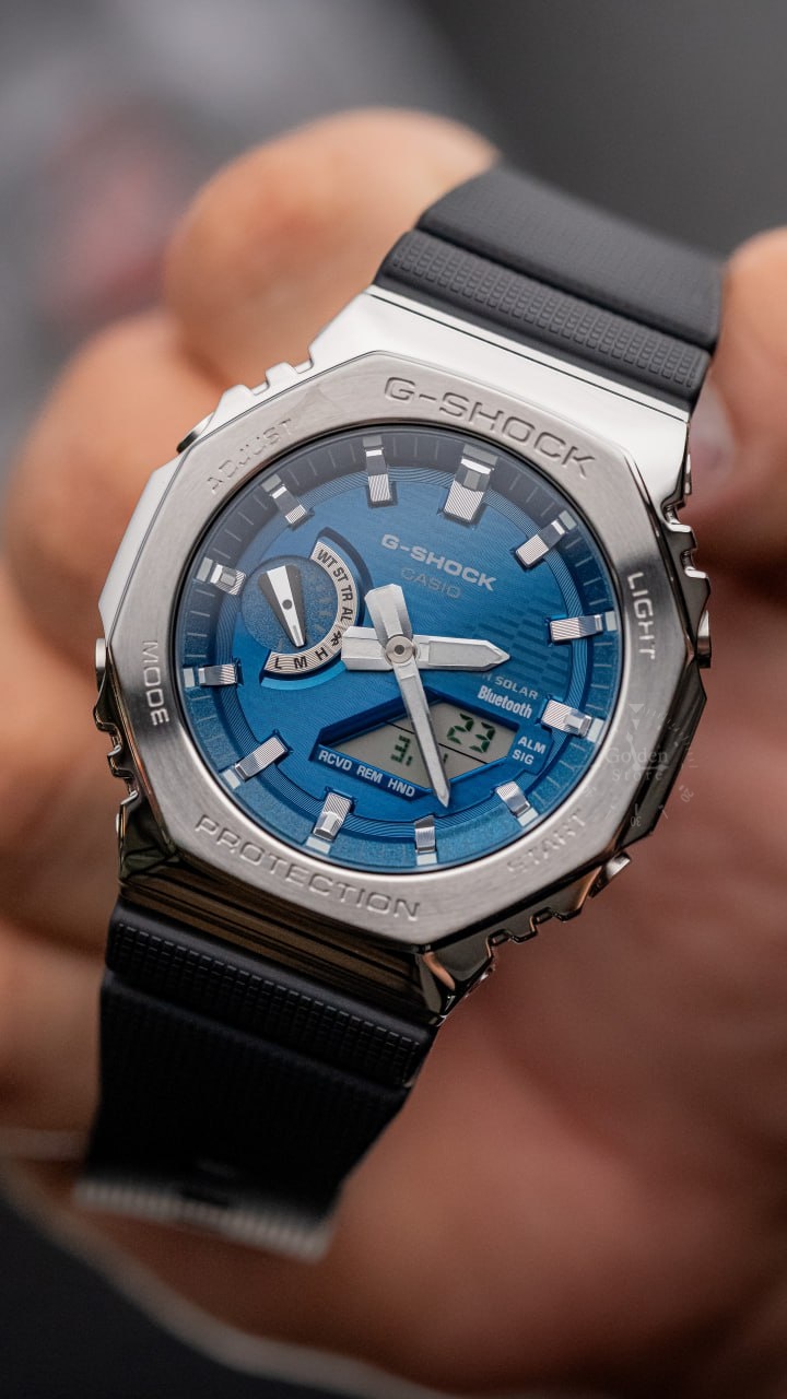 El G-Shock GBM-2100A-2B eleva el diseño octagonal icónico a un nivel más sofisticado, incorporando bisel de acero inoxidable, energía solar y conectividad Bluetooth. Es la combinación perfecta entre resistencia extrema, tecnología inteligente y un estilo moderno con presencia premium.