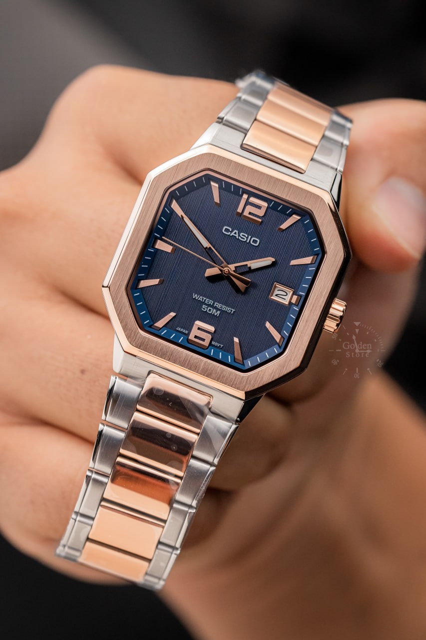 El Casio MTP-B195RG-2AV combina elegancia y modernidad en un diseño sofisticado. Su acabado en acero inoxidable con baño de ion de color oro rosa le da un toque distintivo, ideal para quienes buscan un reloj que destaque en cualquier ocasión, manteniendo funcionalidad y precisión.