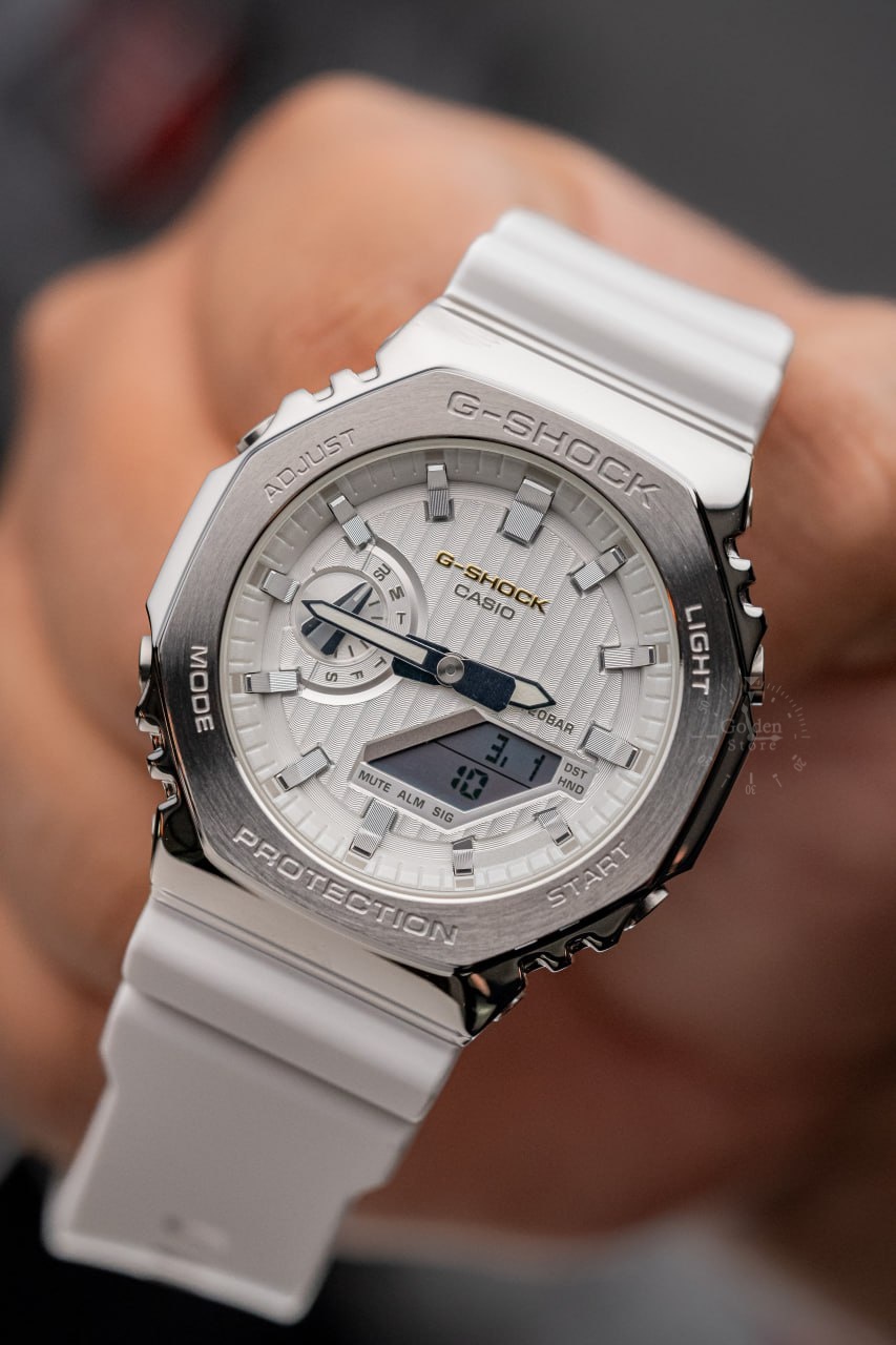 El G-Shock GM-2110SH-7A combina el icónico diseño octagonal con un bisel de acero inoxidable que le da una apariencia más sofisticada y moderna. Mantiene la resistencia extrema característica de G-Shock, integrando funciones avanzadas en un formato analógico-digital versátil y robusto.