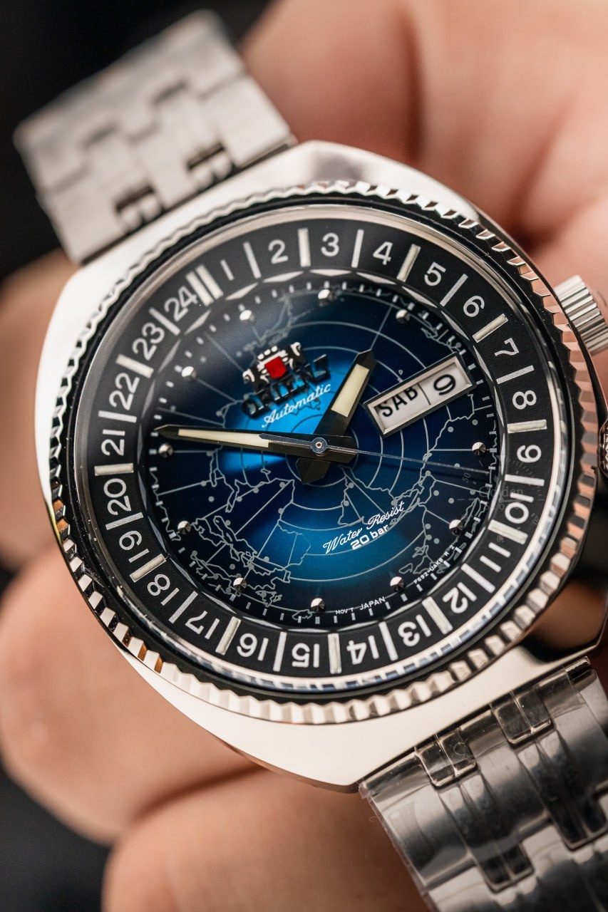 El Orient World Map RA-AA0E03L es una reedición moderna del icónico modelo de 1969, conservando su diseño llamativo y su esfera estilo mapa que lo distingue como una pieza única. Su estética retro se complementa con mejoras actuales como un movimiento automático japonés, excelente resistencia al agua y un bisel bidireccional que realza su carácter aventurero.