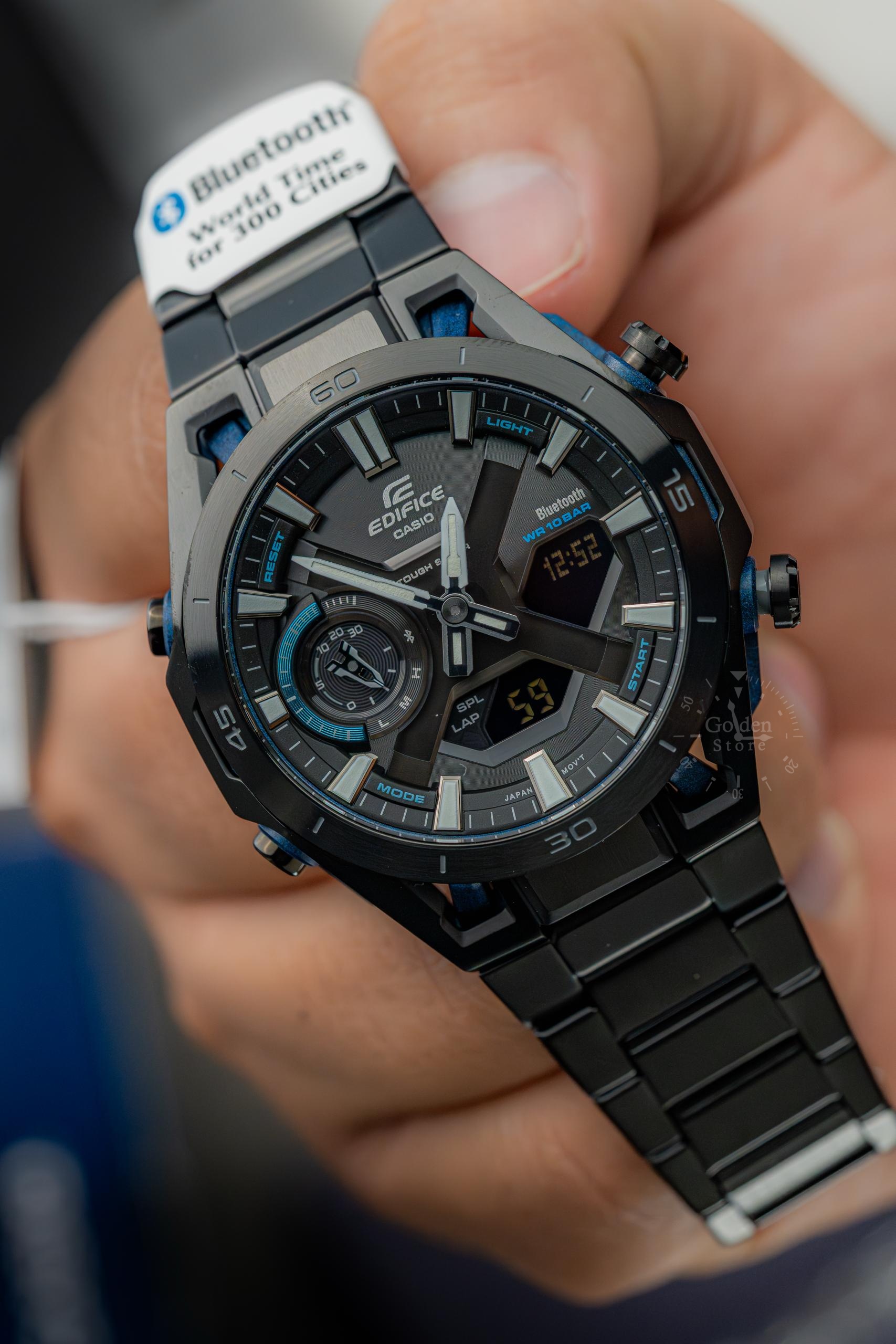 El Casio ECB-2300DC-1A combina tecnología de punta, diseño moderno y resistencia superior, ideal para quienes buscan un reloj funcional con estilo elegante y detalles sofisticados. Su acabado en acero inoxidable con bisel y correa chapados en negro le da un toque contemporáneo, perfecto para uso diario y actividades profesionales.