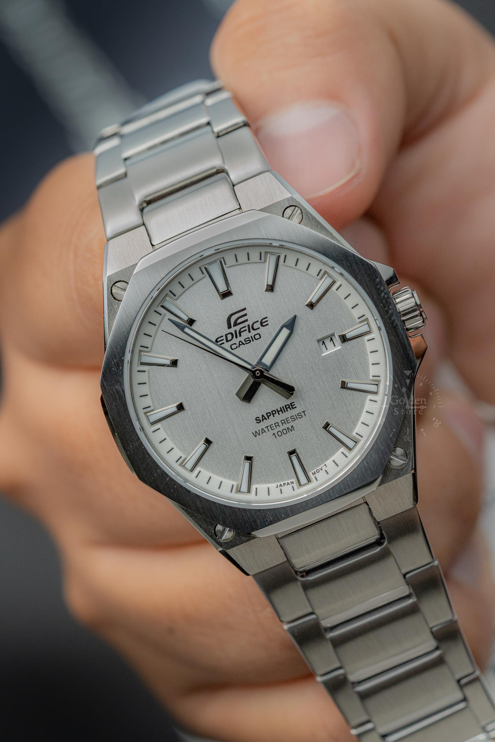 El Casio EFR-S108D-7AV destaca por su diseño elegante, delgado y sofisticado, ideal para quienes prefieren un estilo minimalista con acabados premium. Su estructura de acero inoxidable y perfil ultradelgado lo convierten en un reloj cómodo, moderno y perfecto tanto para ocasiones formales como para el uso diario.