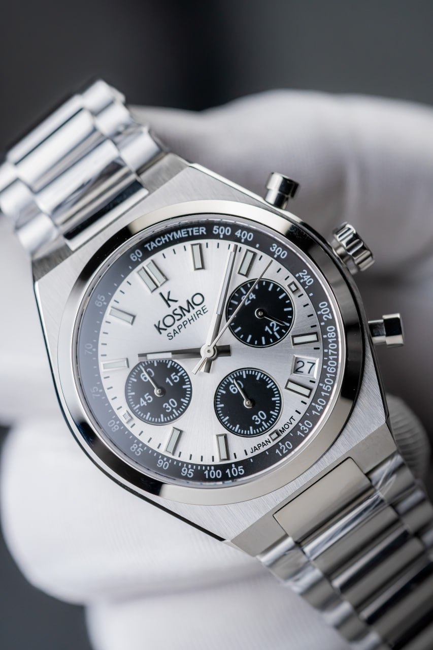 Reloj Kosmo 645-7 – Cronógrafo Blanco & Negro con Cristal Zafiro
