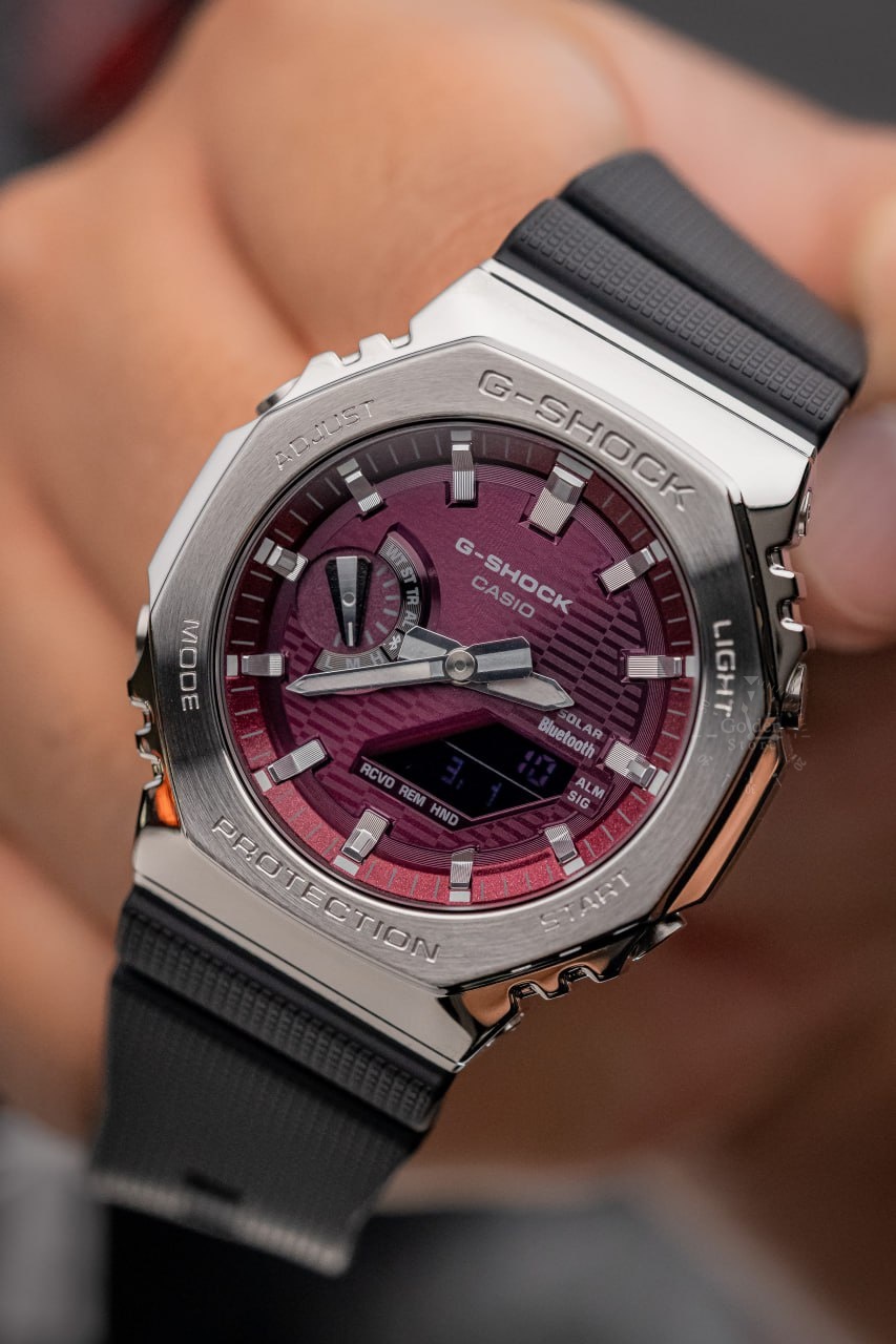 El G-Shock GBM-2100A-4B combina el icónico diseño octagonal con un elegante bisel de acero inoxidable, energía solar y conectividad Bluetooth. Es un modelo que mantiene la resistencia legendaria de G-Shock, pero con un acabado más sofisticado y tecnológico, ideal para quienes buscan presencia y alto rendimiento en un solo reloj.