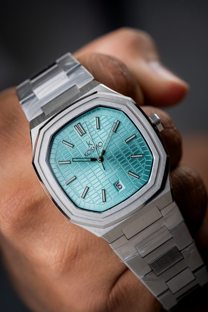 El Kosmo 607-7 - ofrece un diseño moderno con un elegante tono plateado y una vibrante esfera azul. Fabricado con acero inoxidable 316L y cristal zafiro, es perfecto para quienes valoran calidad y estilo duradero.
