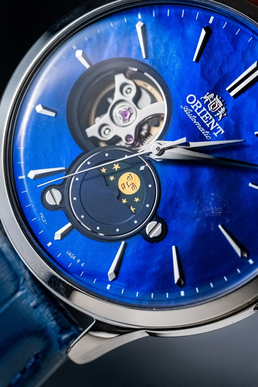 El Orient RA-AS0103A es un reloj automático elegante y sofisticado que destaca por su diseño clásico con detalles dinámicos como el indicador día/noche y el open heart visible. Su acabado con madreperla y correa de cuero lo convierten en una pieza refinada ideal para uso formal o diario.