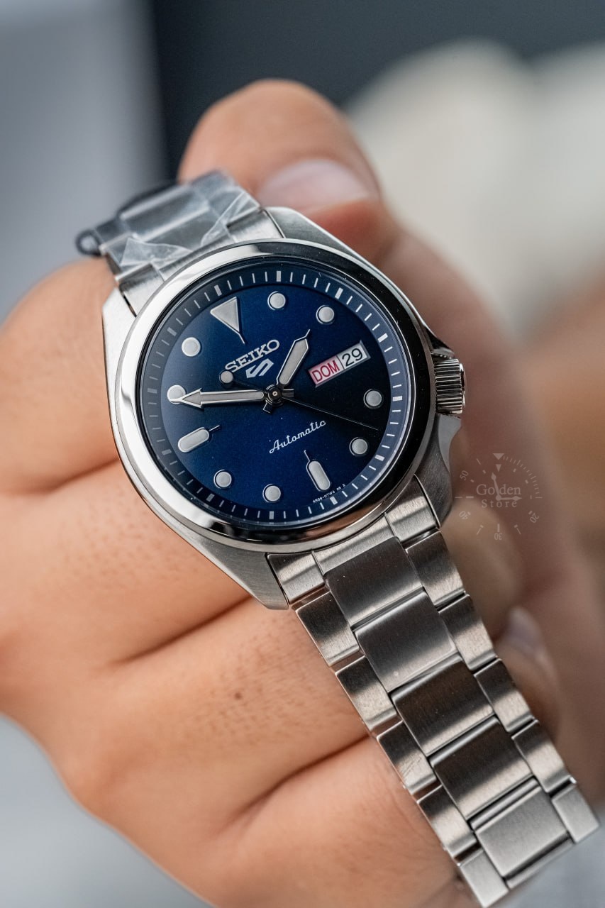 Reloj automático deportivo para hombre con diseño más compacto y elegante. Ideal para quienes buscan el estilo Seiko 5 Sports en un tamaño cómodo para el uso diario.